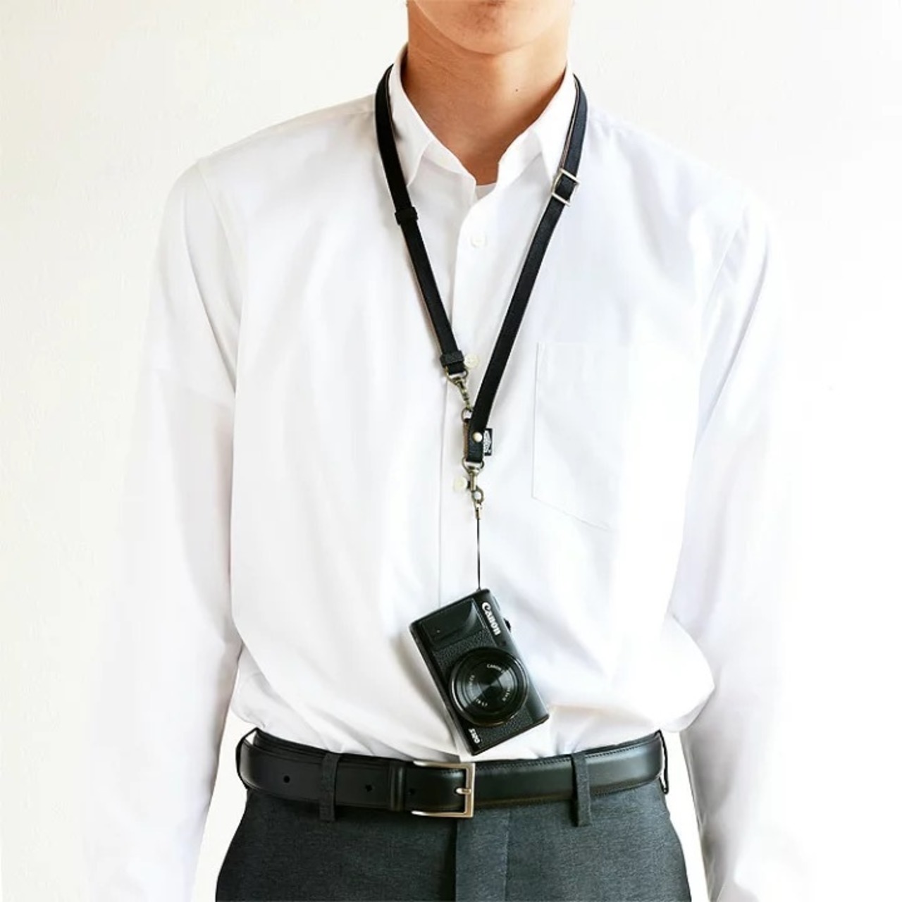ナス菅とストラップ本体に付いているリングを組み合わせることでネックストラップとしてお使いいただけます。