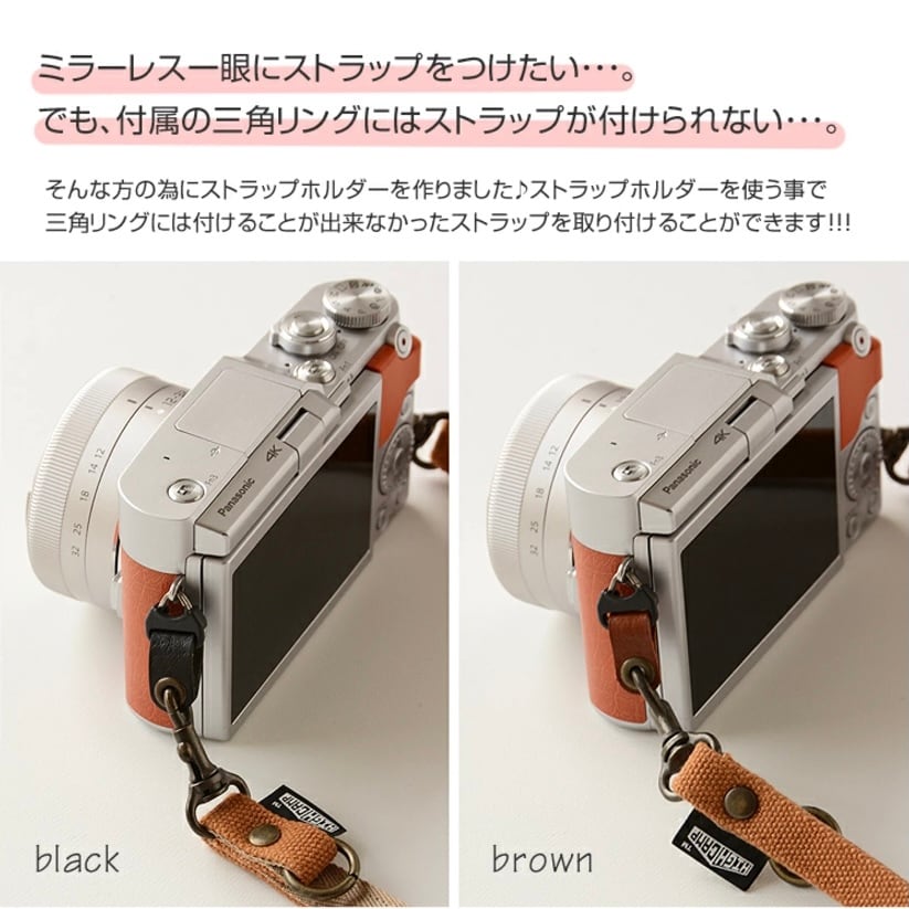 ミラーレス一眼カメラなどに付属している三角リングには直接ストラップを付けることが出来ません。