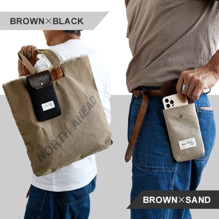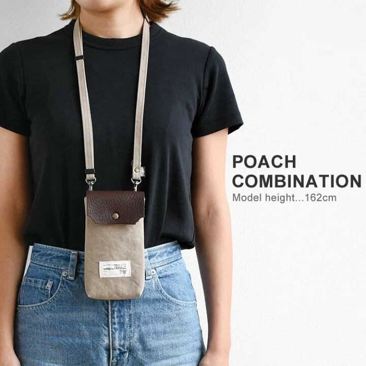 US ARMY ダック生地と栃木レザーを使用したオシャレなスマホポーチ✨帆布ポーチ ミニバッグ ミニポーチ ウエストポーチ ミニバッグ レザーバッグ 栃木レザー【ダック・スマホポーチ】