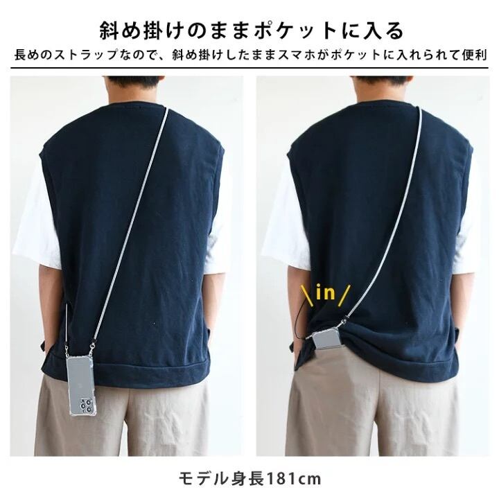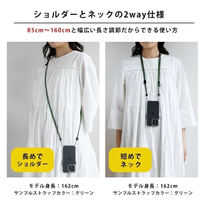 また、長さ調節が可能ですので、斜めかけしたままスマホをポケットに収納できるのも便利です^^