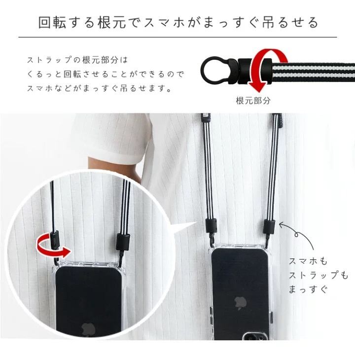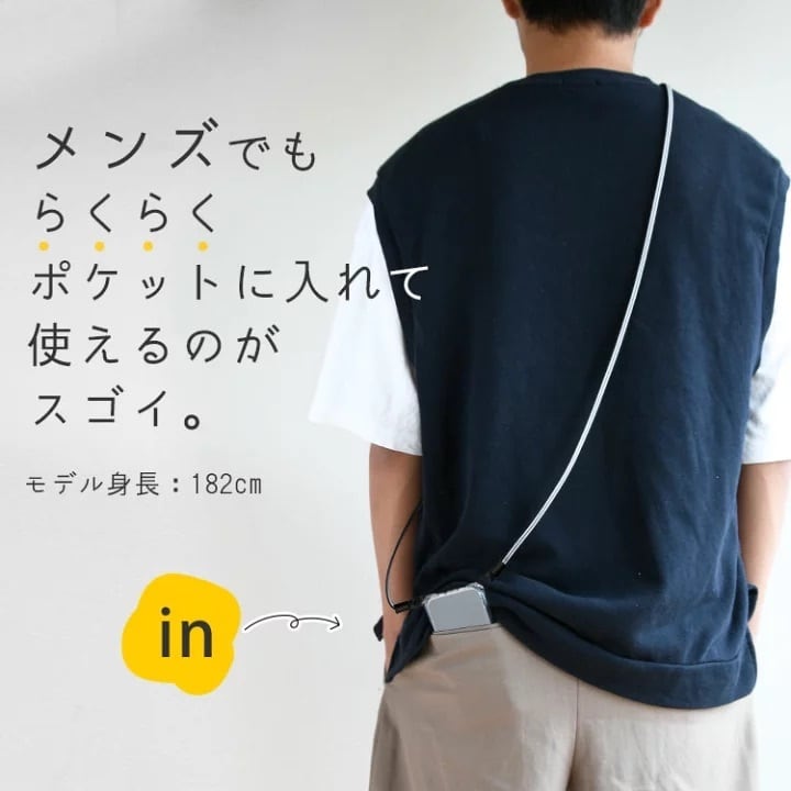 また、長さ調節が可能ですので、斜めかけしたままスマホをポケットに収納できるのも便利です^^