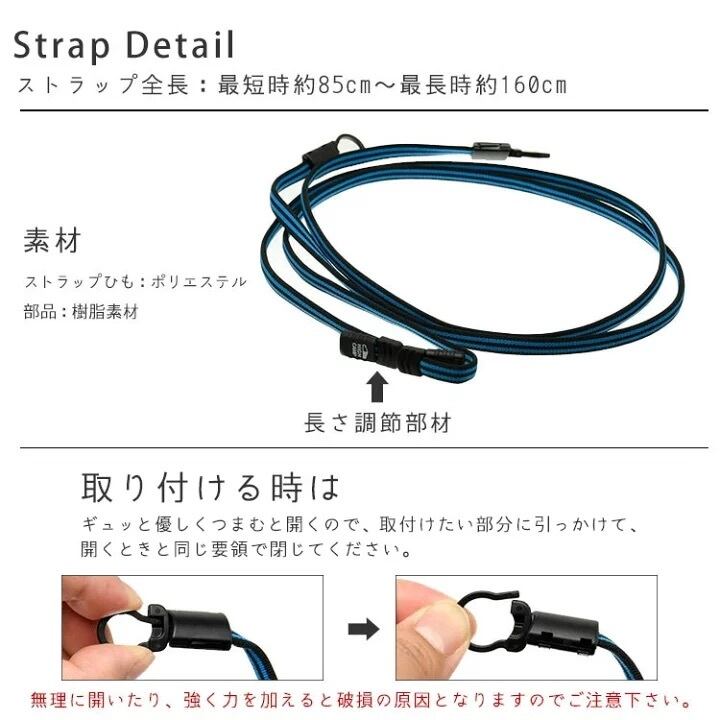 ※ストラップを持って振り回したり引っ張る等のご使用はお止め下さい。