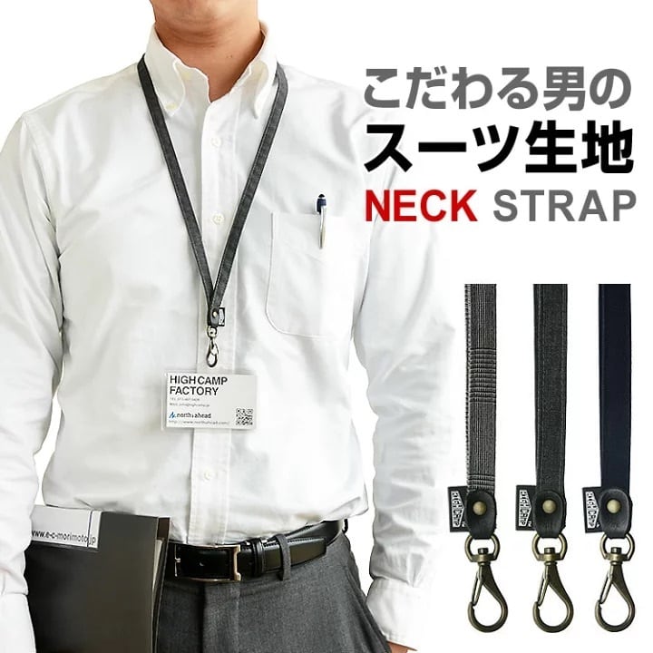 こちらは、オシャレでかっこいいスーツ地のネックストラップです。
